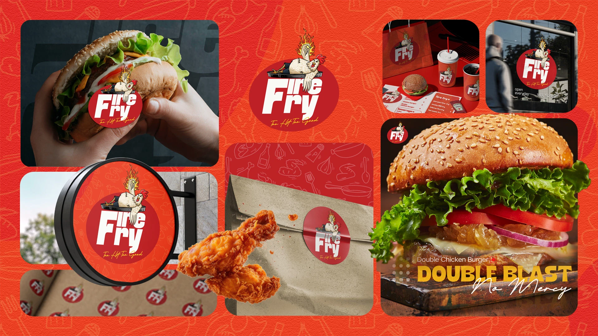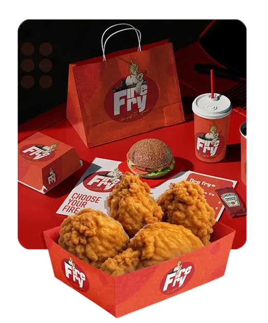 FireFry is an unapologetically bold quick service restaurant brand specializing in fried chicken, burgers, and high impact combo meals. The objective was to build a youth focused, visually powerful food brand that stands out in a competitive fast food market through strong personality, memorable visuals, and crave driven communication.